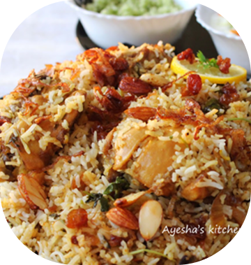 Special chicken biriyani served with Salad & Pickle